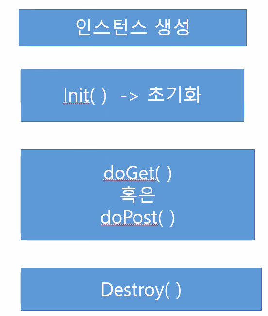 -> 서블릿은 스레드를 작동 -> 서블릿 객체를 생성하고 처리 -> 서블릿 객체의 처리가 완료되면 스레드도 종료