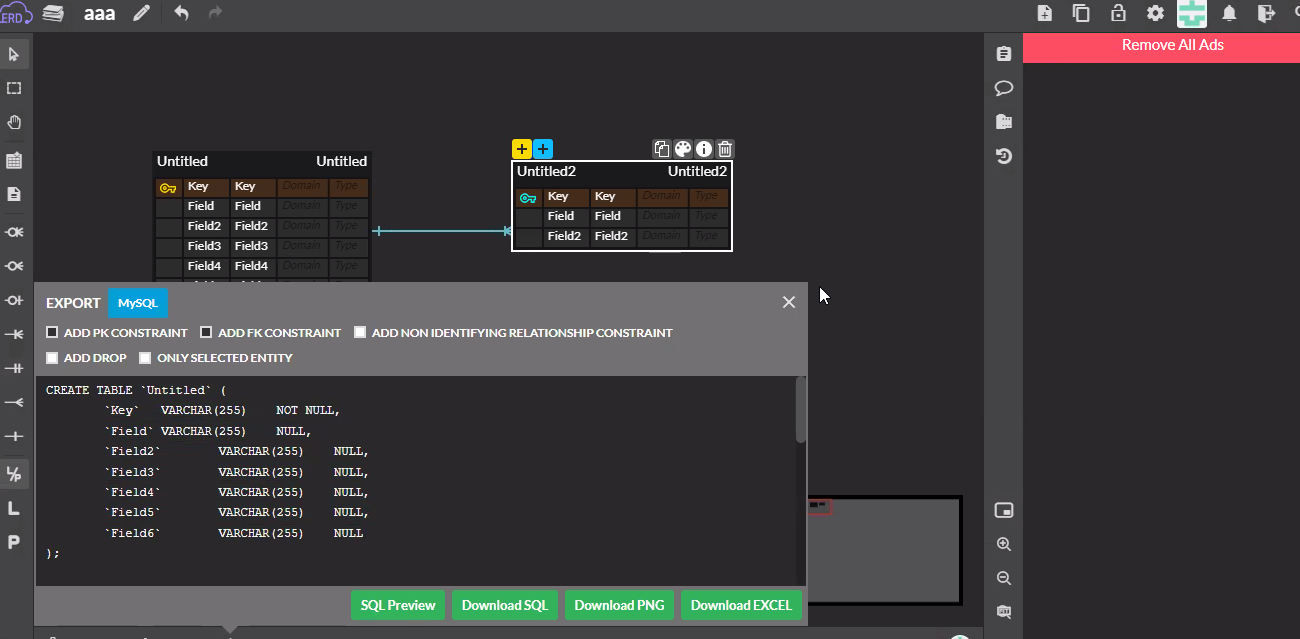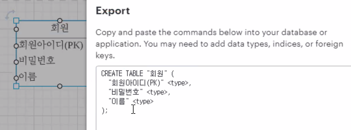 이런식으로 EXPORT TO ERD DATA 도 가능 ↑