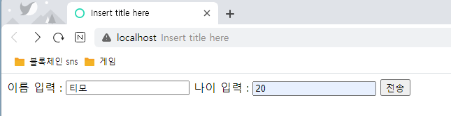 HTML에서 이름과 나이를 입력하고 전송을 누르면