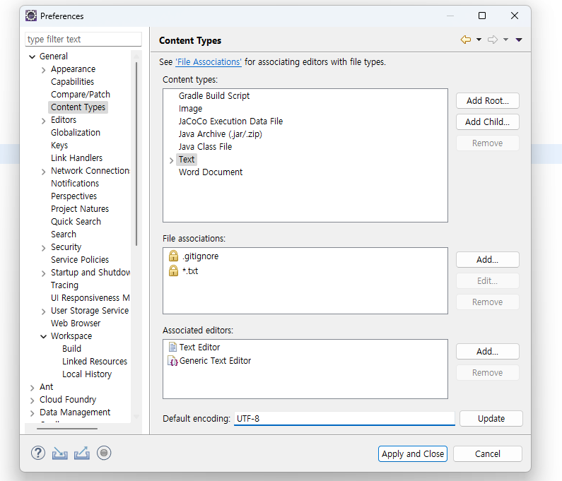 마지막으로 JSP UTF-8 누르고 UPDATE 까지 한다음 APPLY AND CLOSE