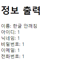 비밀번호: <jsp:getProperty name="member" property="pw"/> <br>