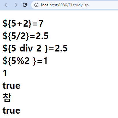 \${5 div 2 }=${5 div 2}<br> <!-- 나누기 -->