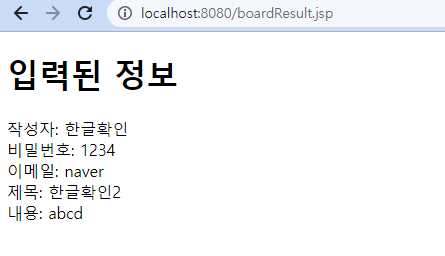 비밀번호: <%= request.getParameter("pw") %> <br>