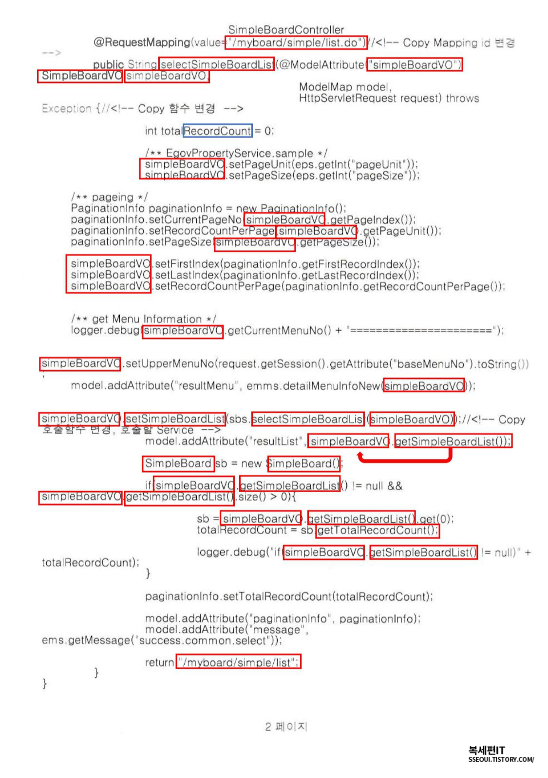 simpleBoardVO라고 생성한 빈집에 getSimpleBoardList라는 데이터를 담아주는 작업 진행