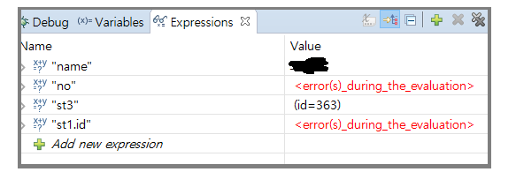 5. Expression 탭에서는 찾고자 하는 변수를 입력하면 그 변수에 대한 값을 확인 가능