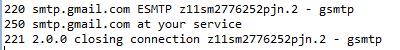 다음은 SMTP 서버와 통신하는 예 입니다. HELO, QUIT 과 같은 간단한 SMTP 명령을 보내서 통신하는 예 입니다.