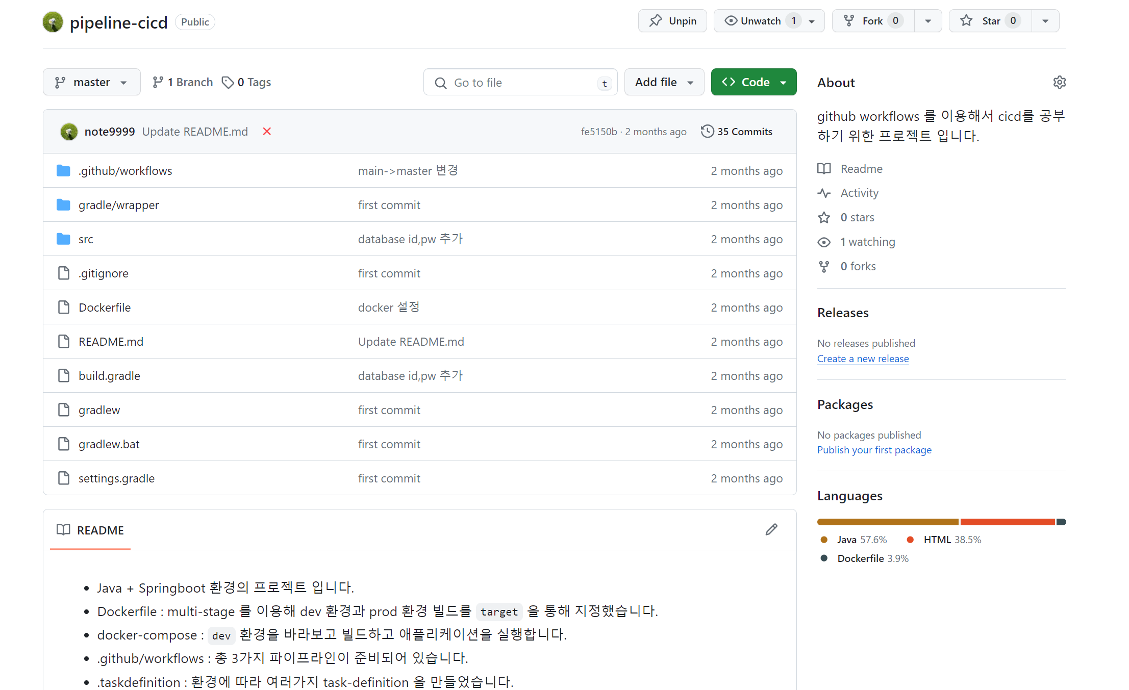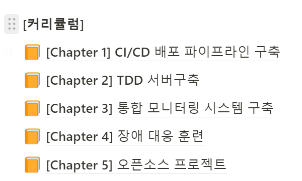 위와 같은 챕터로 진행된다. CI/CD 파이프라인 구축은 개인적으로 가장힘든 프로젝트였다. 신입이 보통 하지 않는 업무다 보니.. 그치만 반대로 신입이 할 수 없는 업무를 직접 경험해 보아서 좋았다.