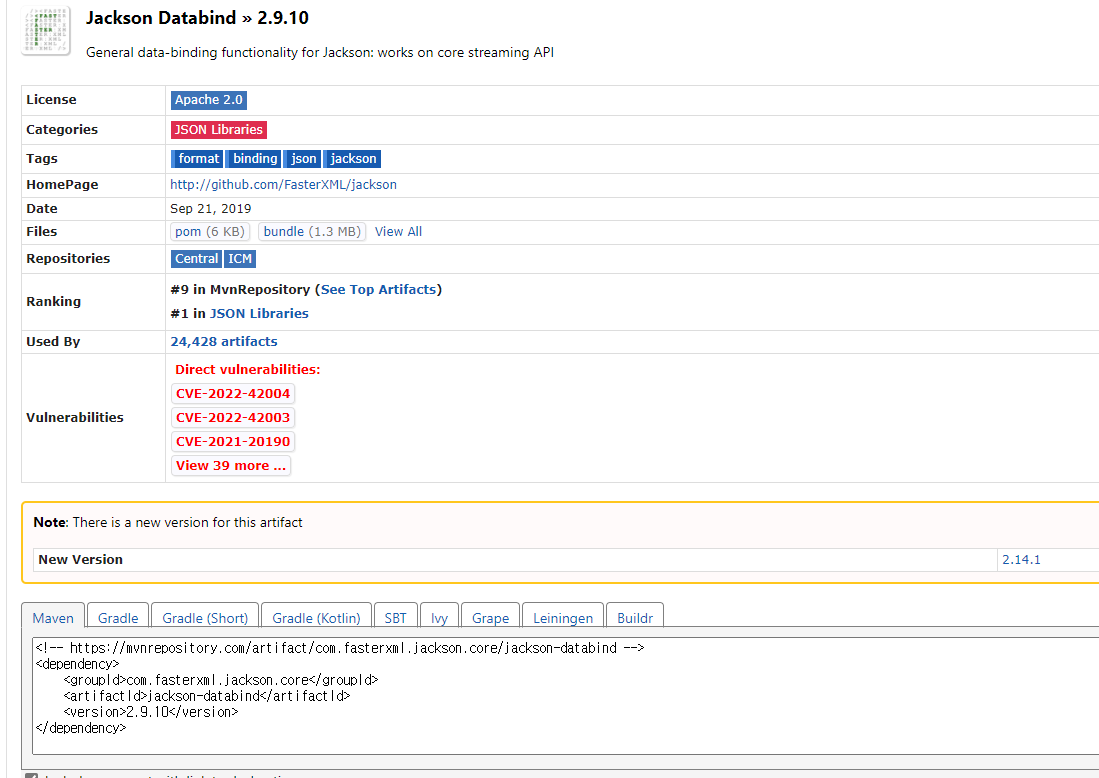 Maven Repository: com.fasterxml.jackson.core » jackson-databind » 2.9.10 (mvnrepository.com)