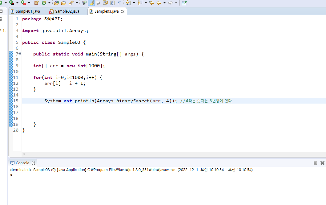 // 이진 검색하려면 무조건 정렬이 되어있어야 합니당