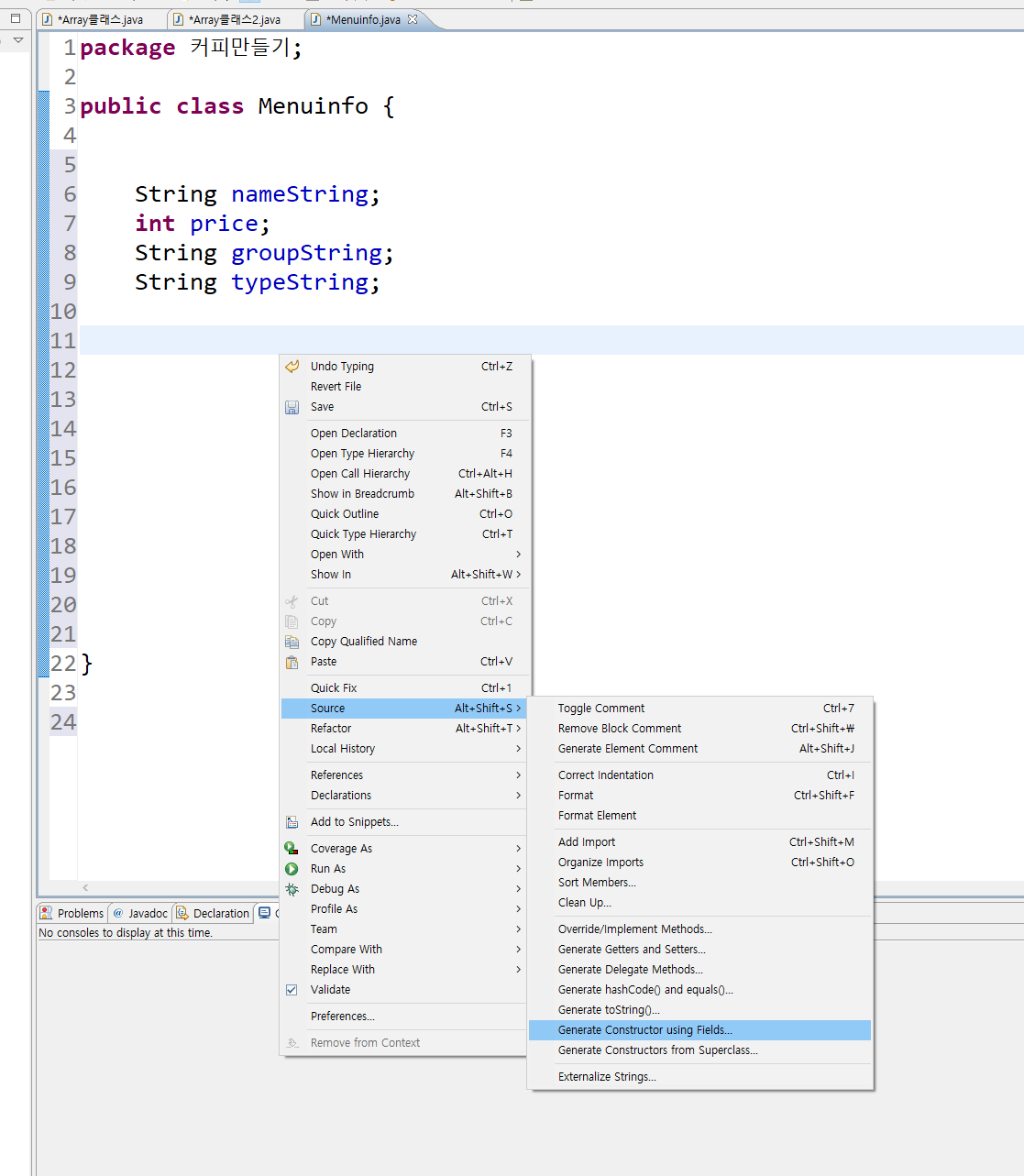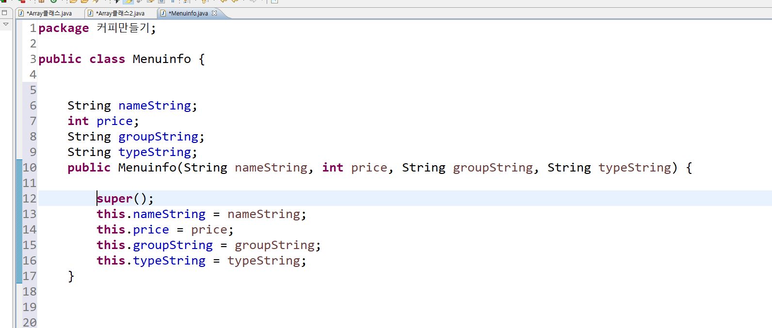 // new MenuInfo("아메리카노", 2000, "커피", "기본커피")) <-- value 값을 새롭게 객체를 생성해서 "아메리카노" 키 값에 다 넣어진것