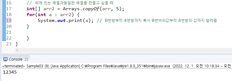 System.out.print(a); // 0번방부터 4번방까지 복사 0번바의값부터 4번방의 값까지 알려줌