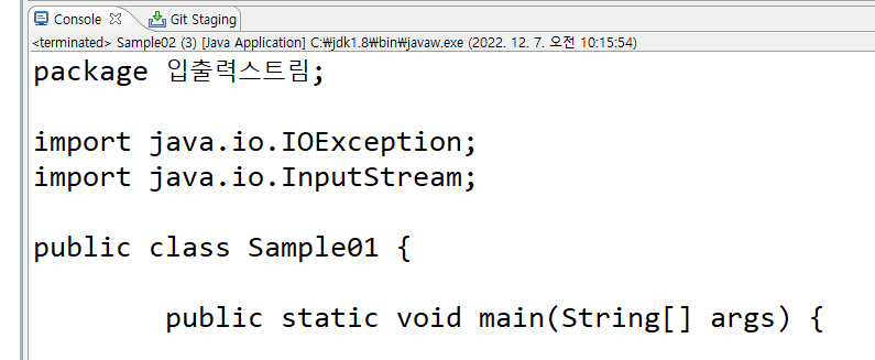 FileInputStream fis = new FileInputStream("src/입출력스트림/Sample01.java");