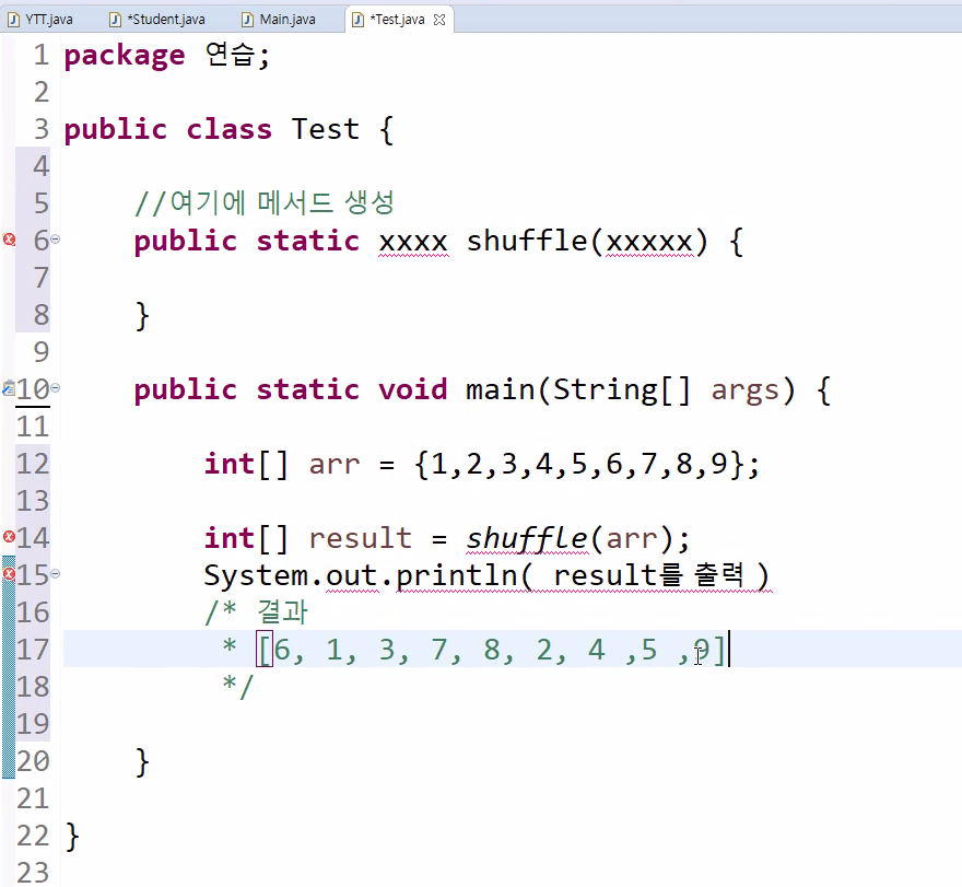 * 다음과 같은 변수를 가지는 Student 클래스를 완성하시오