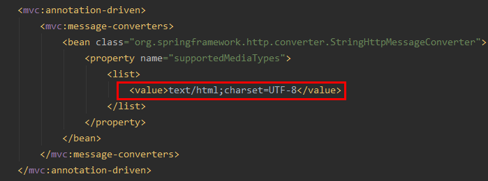 * dispatcher-servlet.xml 의 <annotation-drvien> 태그 내에 선언하는 <message-converter> 에서 확인.