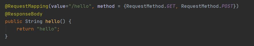 - Get만 처리하고 싶다면 method에다 허용하고 싶은 RequestMethod를 설정해주면 된다.