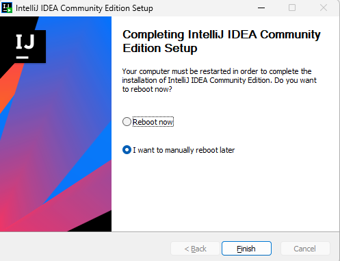 설치 완료 후 바로 재시작 할건지 아니면 나중에 재시작 하고 먼저 메뉴얼 세팅 부터 할건지 선택하라고 하는데 우선 나중에 재부팅 하는 방향으로 해서 진행을 하도록 하겠습니다.