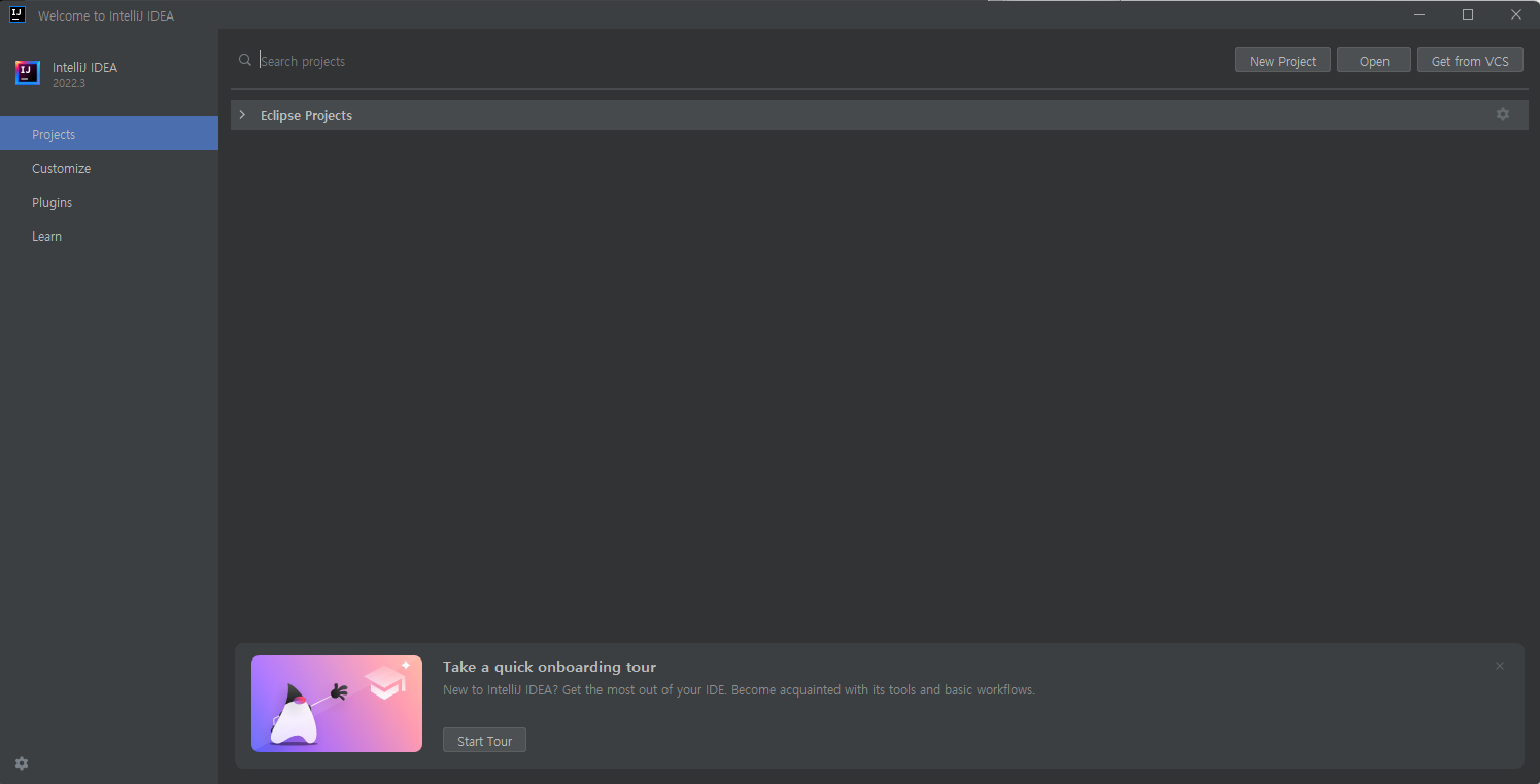 이제 드디어 인텔리제이 프로그램이 실행되었습니다.