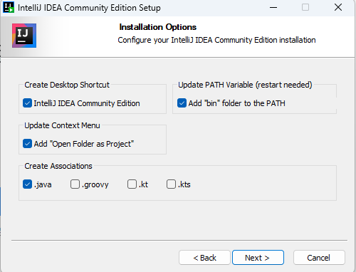 - Update PATH variable(restart needed) : 윈도우 환경변수에 자동으로 추가 할 수 있도록 체크