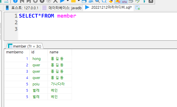 member테이블있는 데이터 전부조회하기