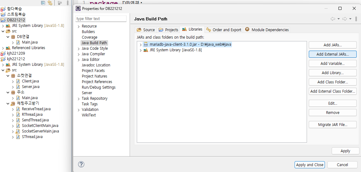 | MariaDB 마리아디비 자바JAVA 8버전 커넥터 다운로드 후 이클립스에 적용시키는법(설치,설치방법) (0) | 2022.12.13 |