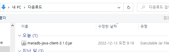 본인이 받아놨던 폴더에서 mariadb-java... 3.1.0jar를 클릭한다