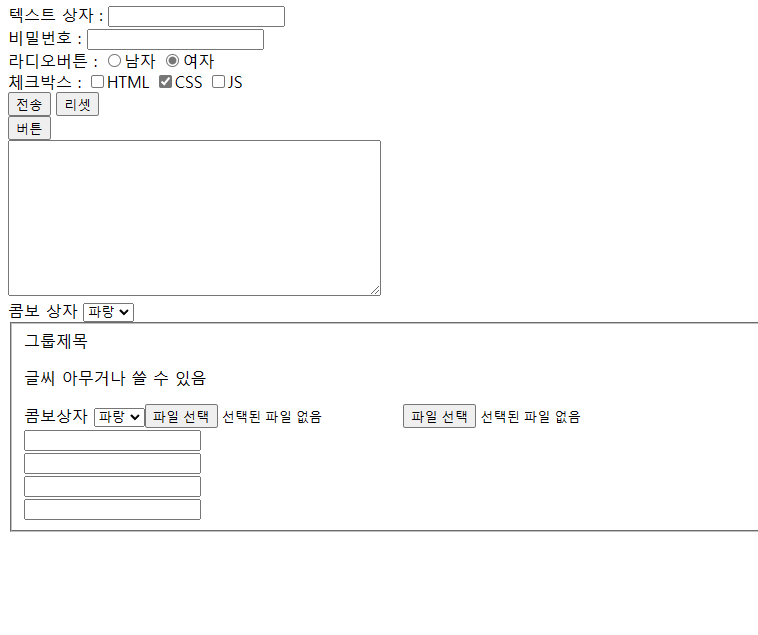 체크박스 : <input type="checkbox" name="chk" value="html">HTML