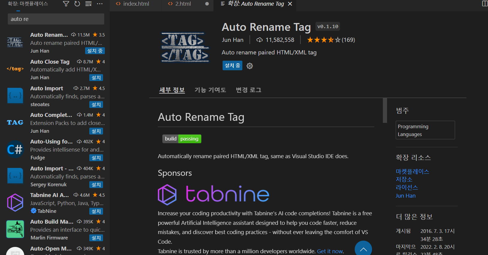Auto Rename Tag를 설치하면 훨씬 편하게 작업가능