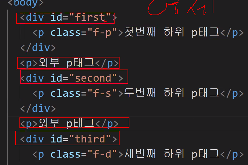 바깥쪽에 있는게 부모 태그 안에있는 것이 자식이 됨 ↓