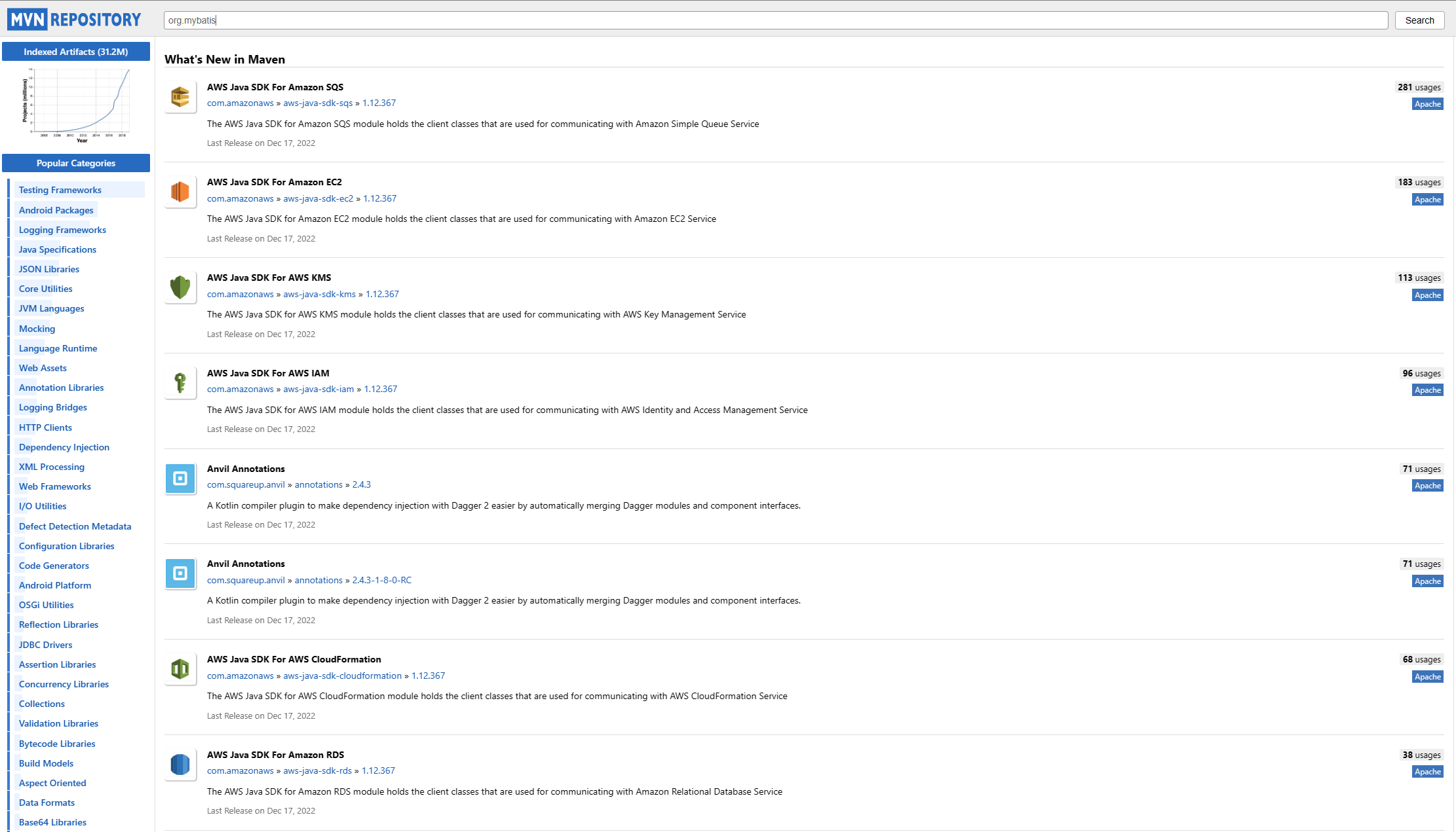 Maven repsitroy 에서 org.mybatis 검색 ↓