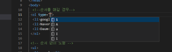 번호 타입을 바꾸고 싶을때는 type을 넣어준다. (html에서 설정 권장 안함, css에서 처리 권장)