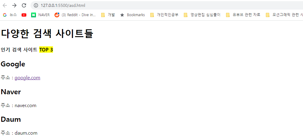 <p><strong>인기 검색 사이트 <mark>TOP 3</mark></strong></p>