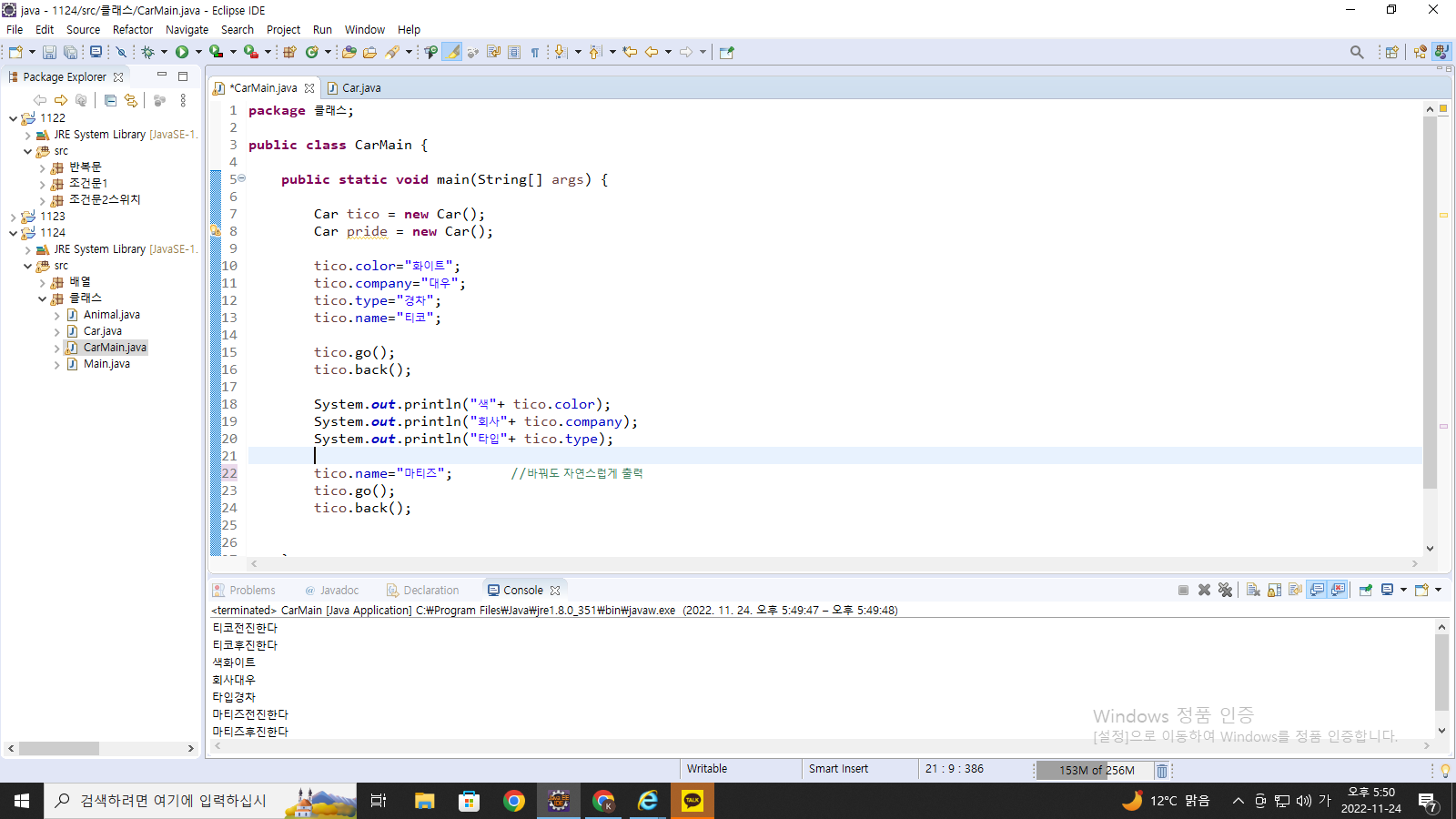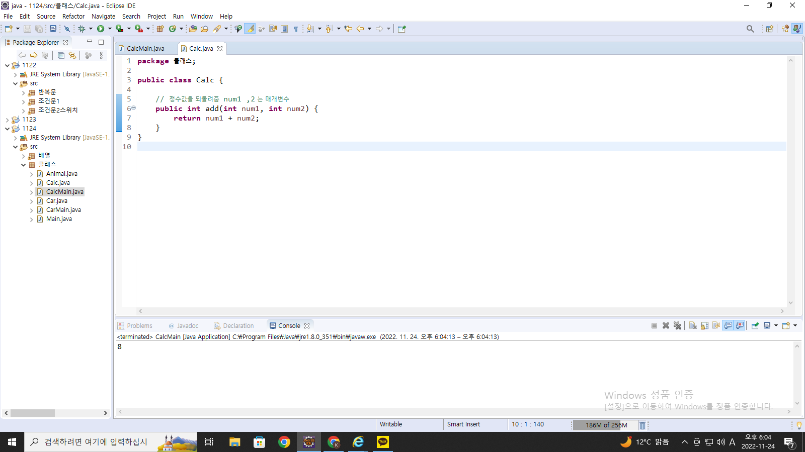 | 국비지원 JAVA(자바) 프로그래밍 웹개발자 (계산기 만들기, 오버로딩 ,접근제한자,캡슐화,에어컨 만들기) (0) | 2022.11.25 |
