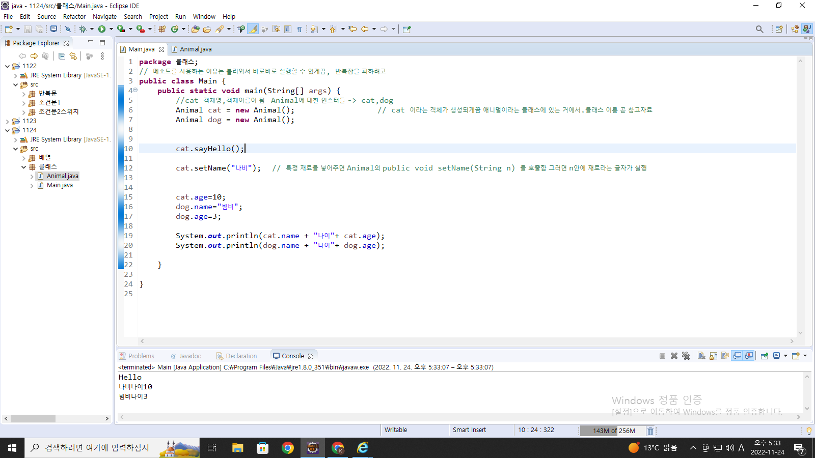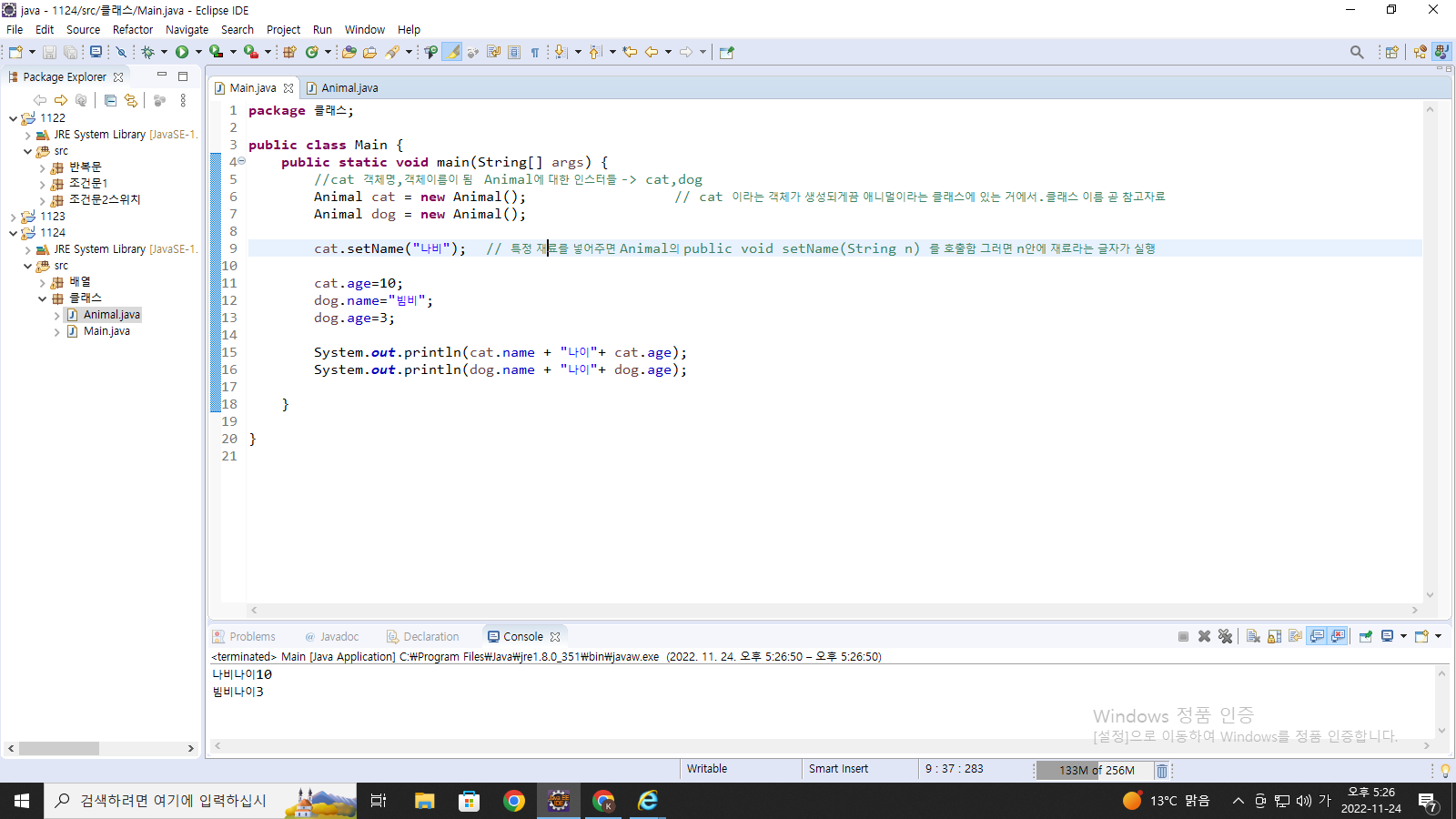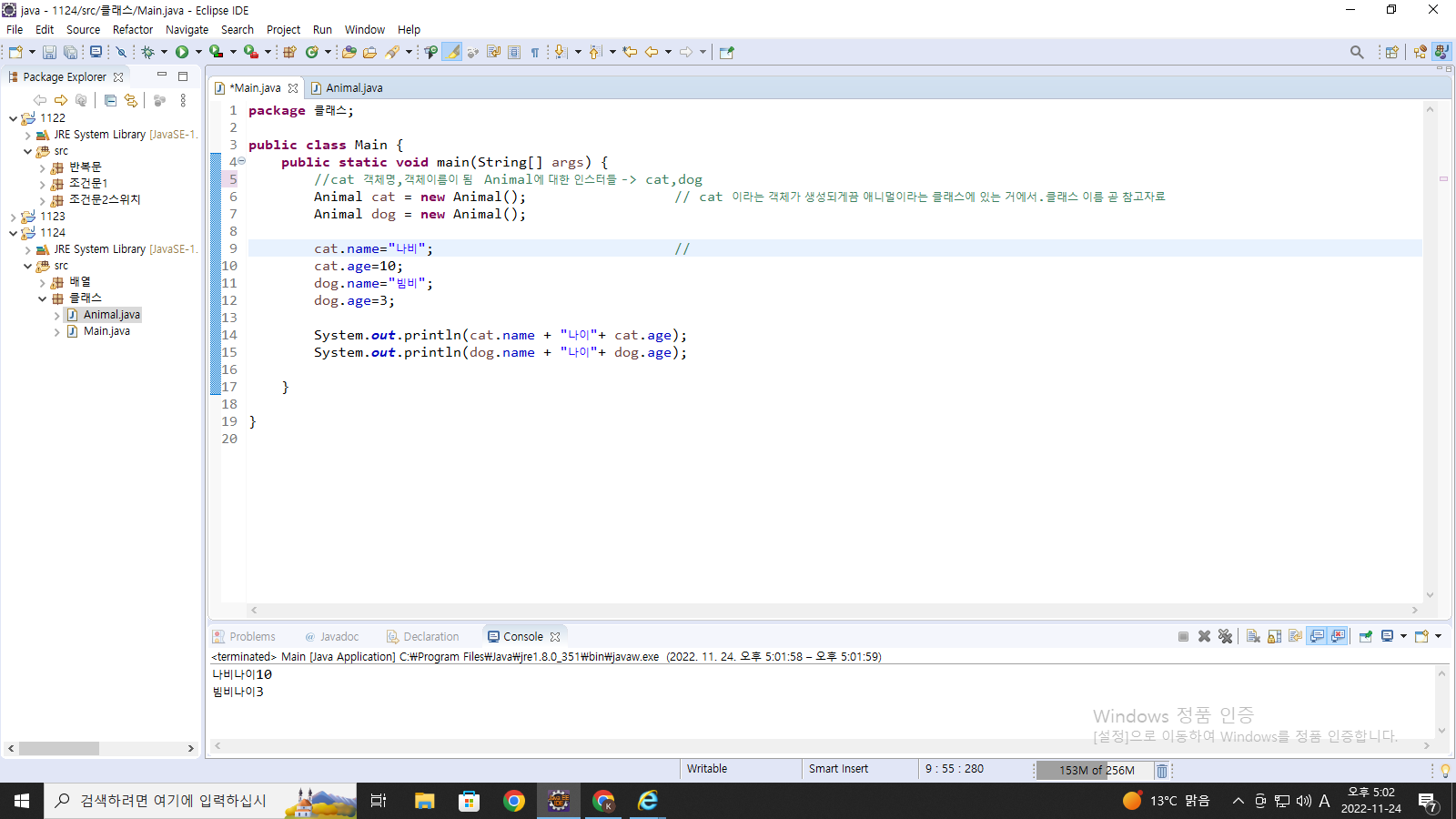 //cat 객체명,객체이름이 됨 Animal에 대한 인스터들 -> cat,dog