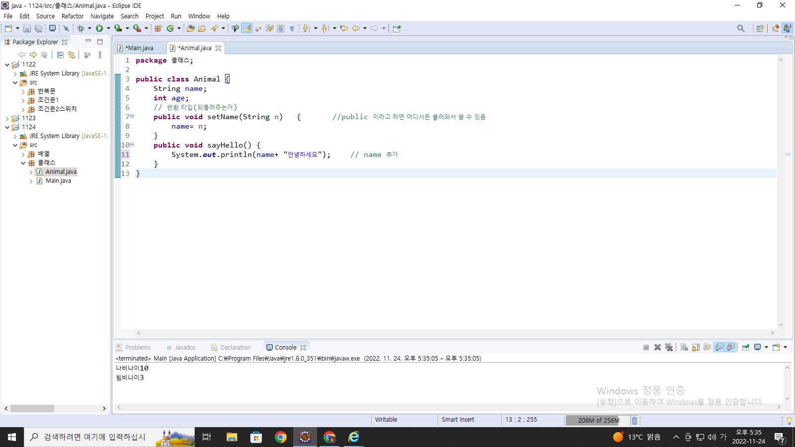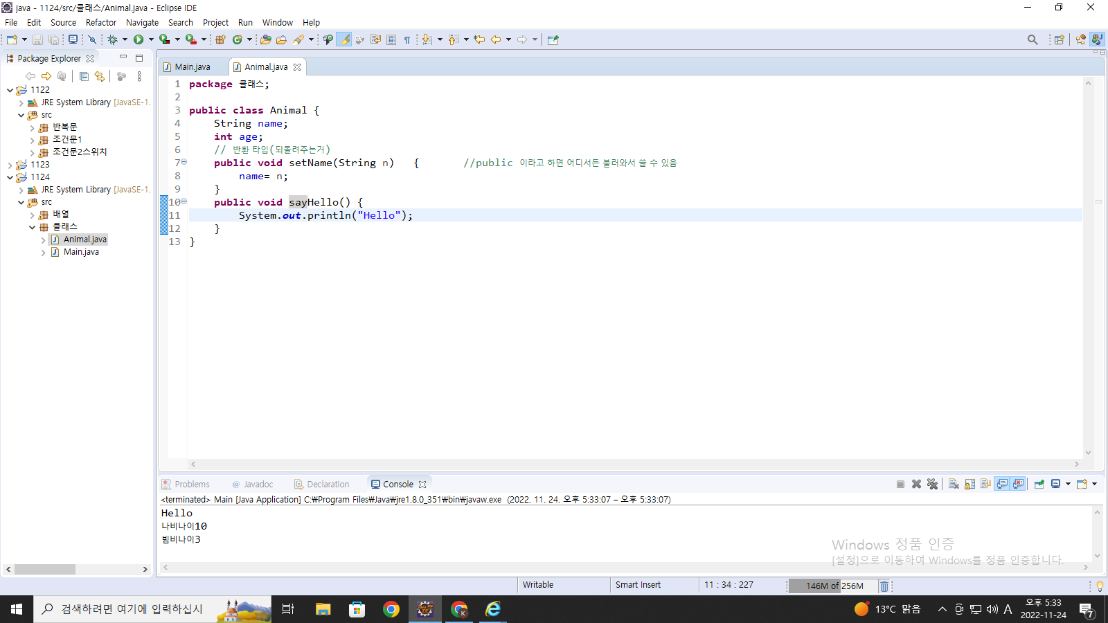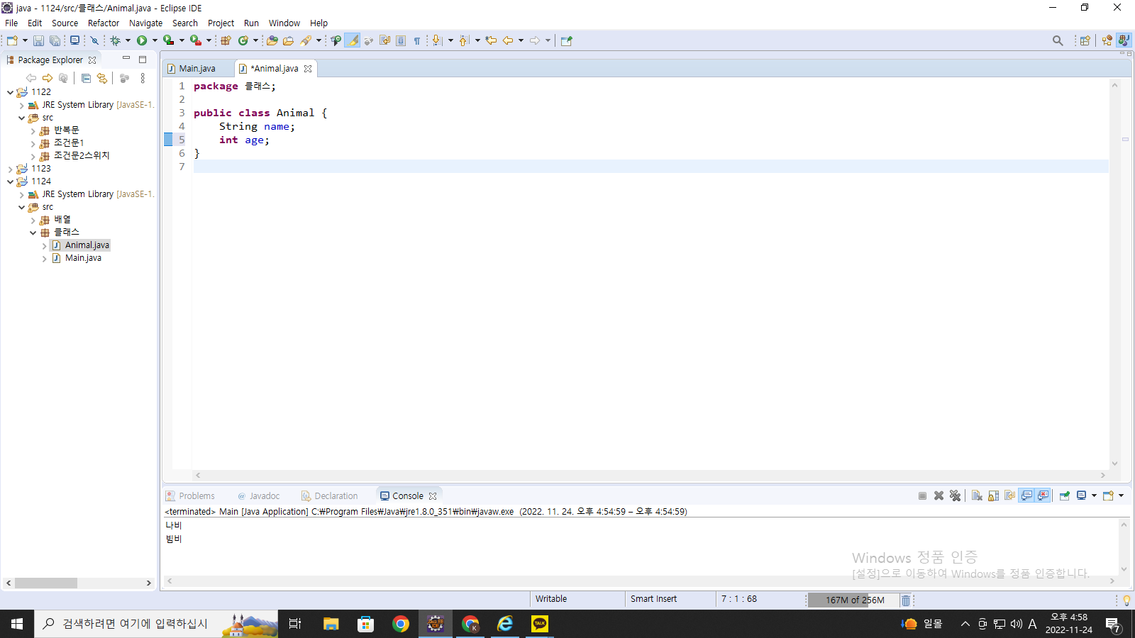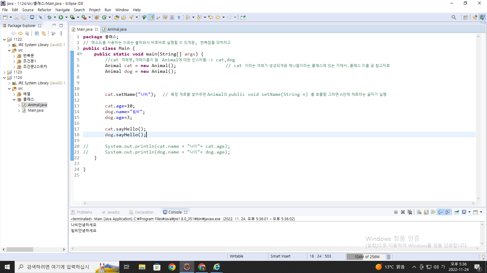 //cat 객체명,객체이름이 됨 Animal에 대한 인스터들 -> cat,dog