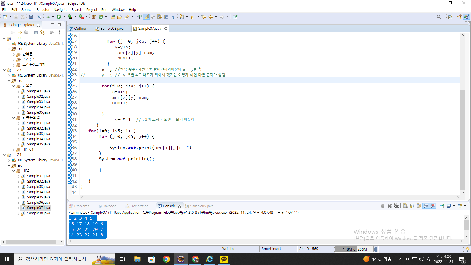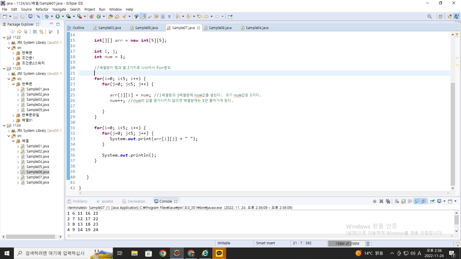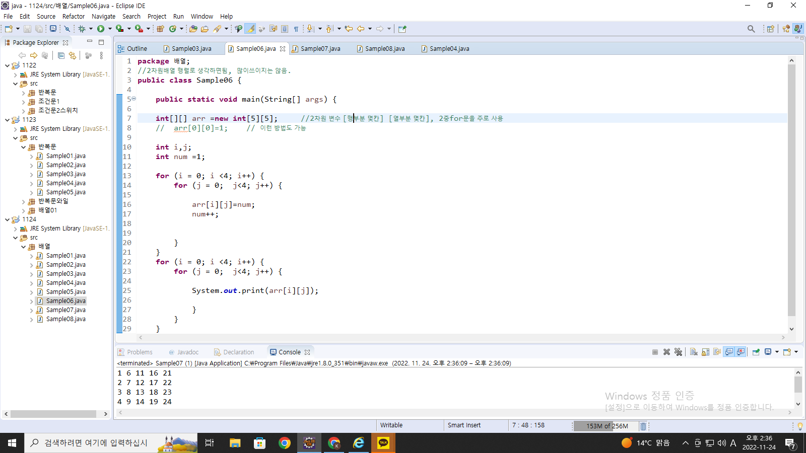 | 국비지원 JAVA(자바) 프로그래밍 웹개발자 (반복문: 이중for문, while, do~ while; + 배열 찍먹) (0) | 2022.11.23 |