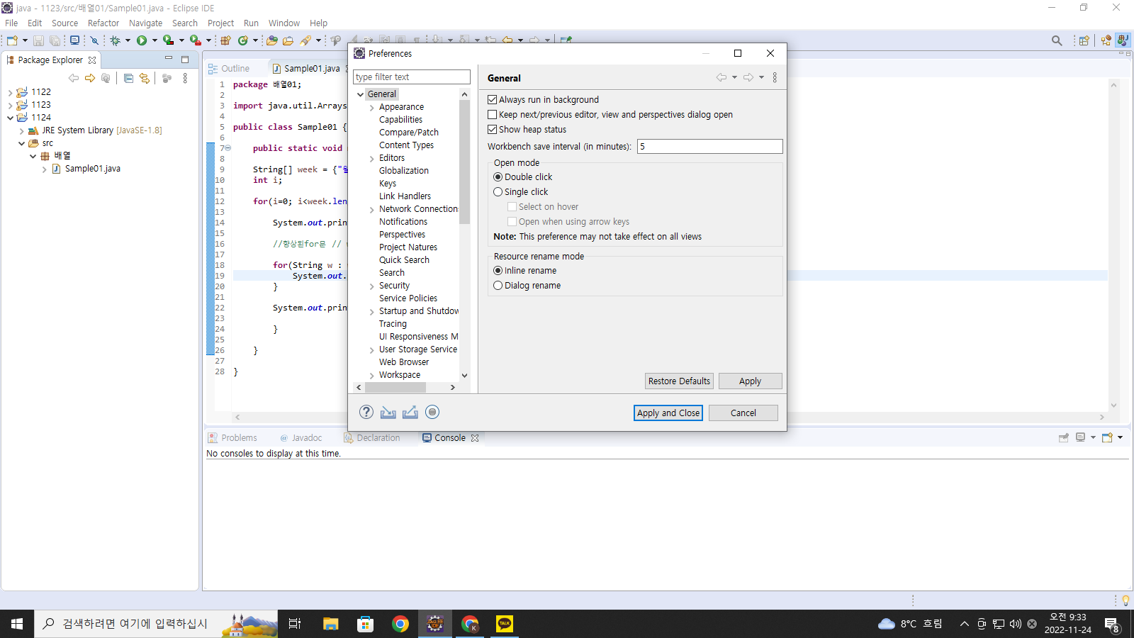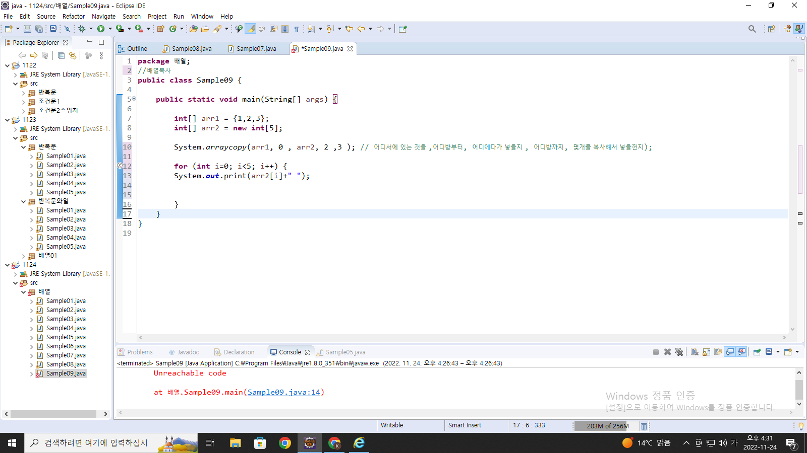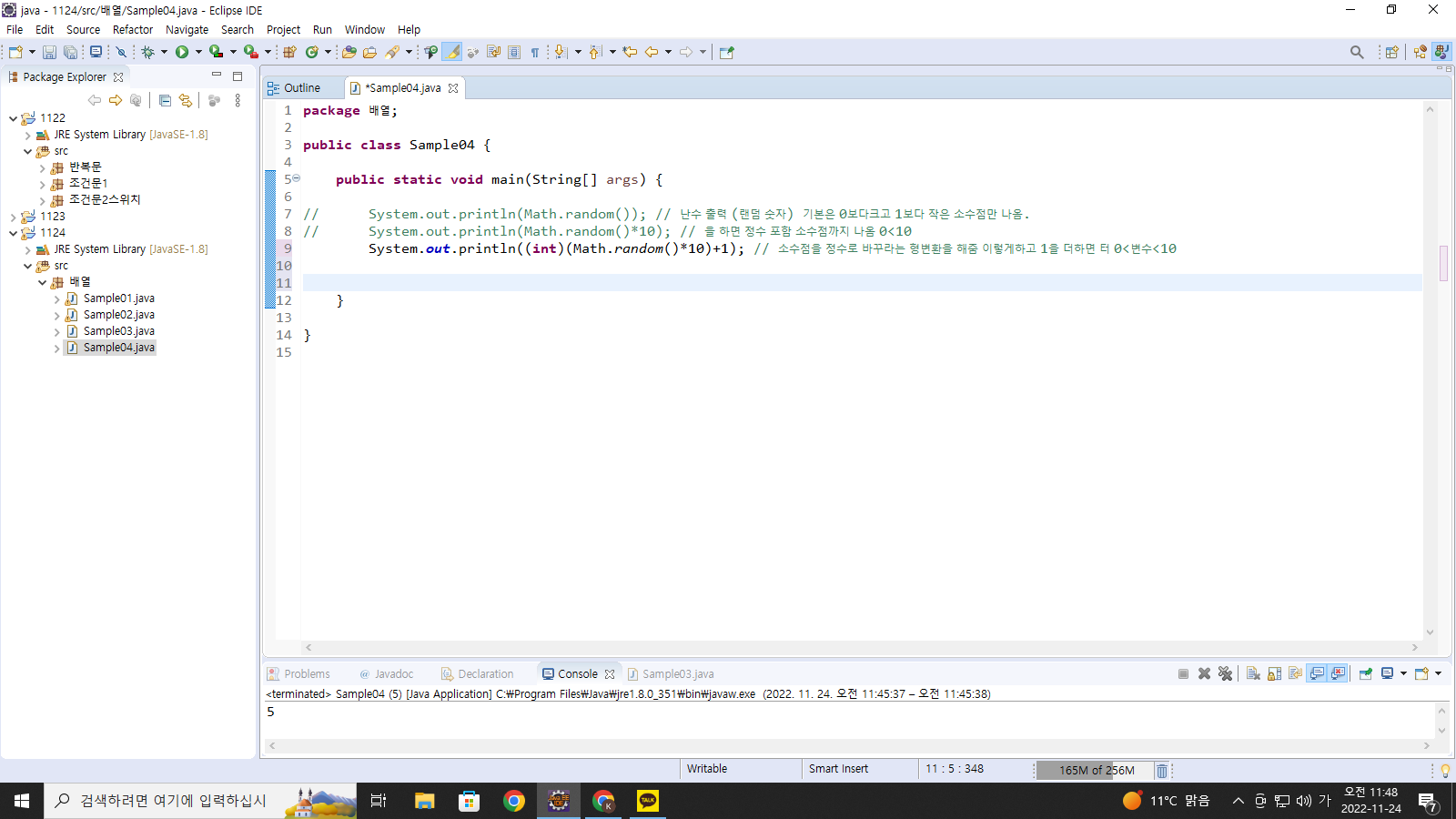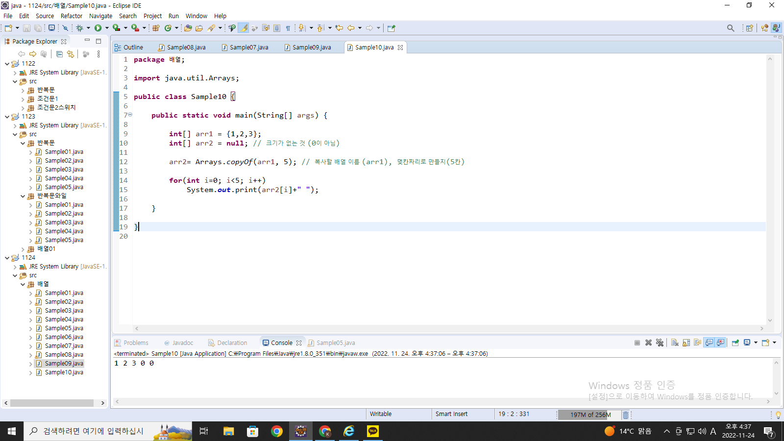| 국비지원 JAVA(자바) 프로그래밍 웹개발자 (반복문: 이중for문, while, do~ while; + 배열 찍먹) (0) | 2022.11.23 |