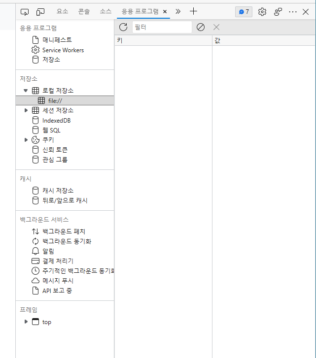 로컬 스토리지 - 브라우저 내의 저장공간