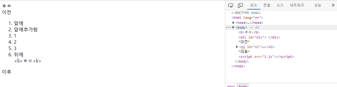 ol.append(b,'<li>ㅎㅇ<li>');