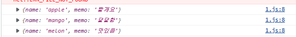 {name : 'mango', memo : '달달함'},
