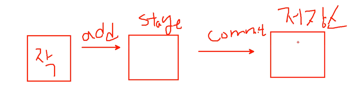 작업하고 add하고 stage에 저장시켜놨다가(스테이징이라고함) commit을 해야 저장소로 옮겨짐!